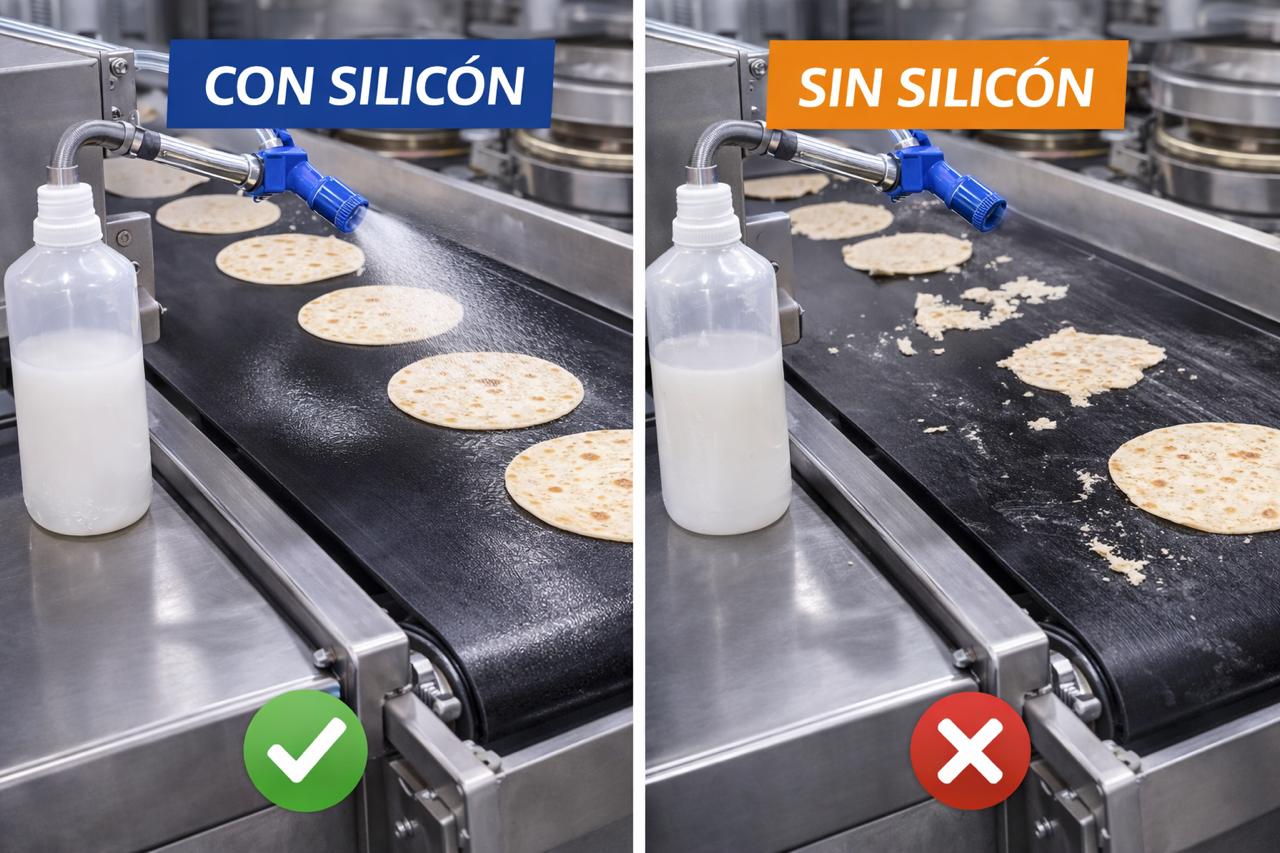 Es un producto antiadherente de apariencia en gel semitransparente al 80% en sólidos. Para uso en las bandas sin fin en máquinas tortilladoras.
