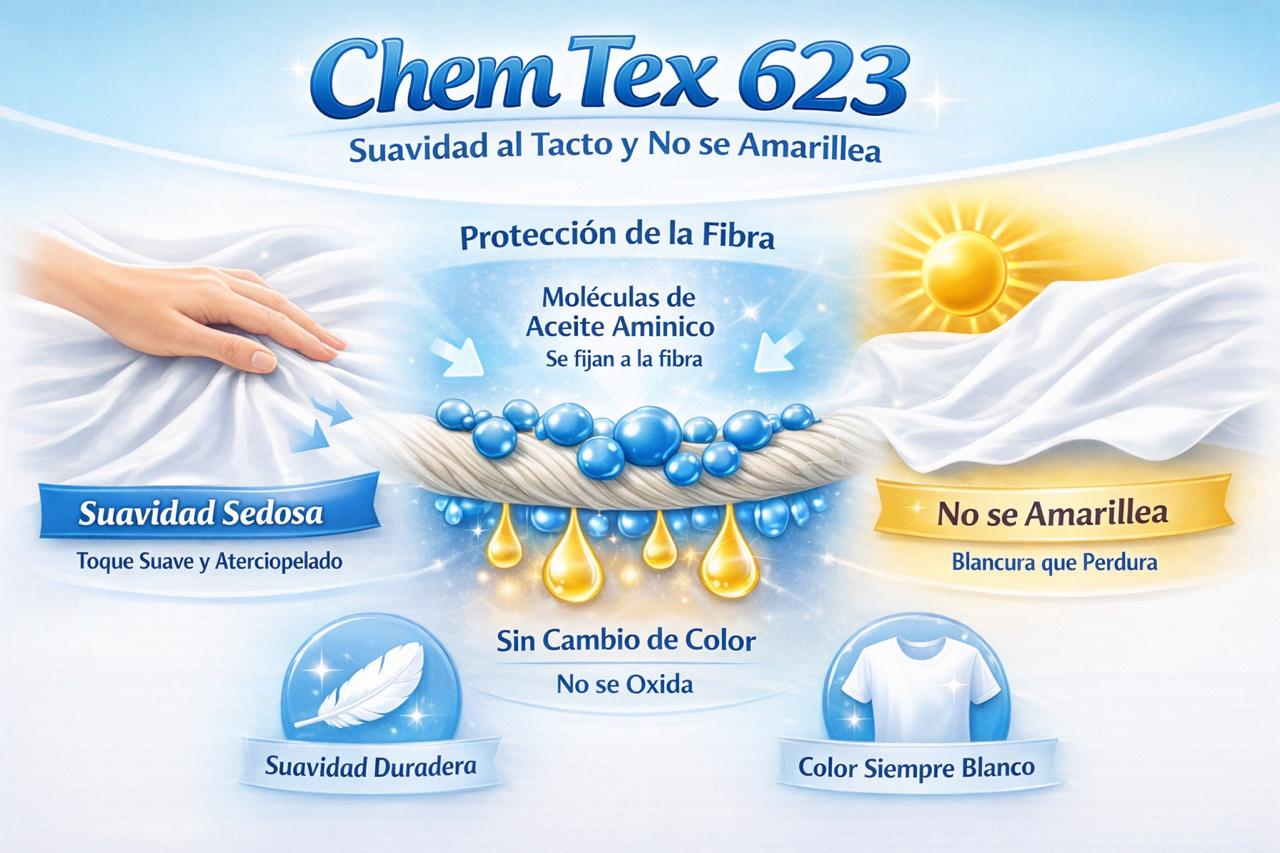 Es un fluido de silicón premium modificado, que da un tacto extremadamente suave sin presentar en ningún momento matices de amarilleamiento en el proceso textil.